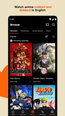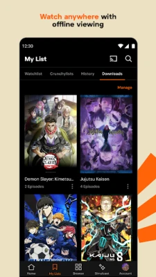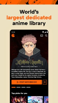 Tiririsha anime maarufu na zenye ukadiriaji wa juu wakati wowote, mahali popote na programu ya Crunchyroll. Furahia vipindi vipya, filamu, na vipenzi vya zamani bila matangazo na kwa ubora wa hali ya juu. Gundua mkusanyiko mkubwa wa anime mtandaoni, pamoja na video za muziki na matamasha ya kipekee, ukiwa na chaguzi za lugha.