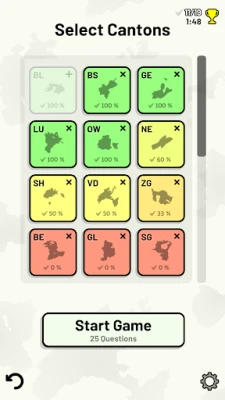 Fungua milango ya ujuzi wa kina na vijaribio vinavyohusu mada sita muhimu: Mahali halisi ya kantoni kwenye ramani, miji mikuu yake, miji yenye watu wengi, bendera zao za kuvutia, nembo za kipekee, na hata vifupisho vyake rasmi. Kinachofanya maombi haya kuwa maalum ni uwezo wake wa kukupa udhibiti kamili. Unaweza kubinafsisha maswali yako kwa kuchagua ni kantoni zipi unataka kuzijaribu au mada gani unayotaka kuichunguza. Zaidi ya hayo, utaweza kufuatilia maendeleo yako kwa urahisi; matokeo ya awali kwa kila kantoni yanaonyeshwa wazi, yakikupa picha kamili ya jinsi unavyoboreka katika kila somo.