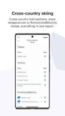 Ikiwa na hifadhidata pana inayojumuisha taarifa za theluji na hali ya nyaya za kupandia kwa zaidi ya maeneo 200 ya kuvutia ya msimu wa baridi nchini Uswisi, Swiss Snow inahakikisha unapata data sahihi na iliyosasishwa. Hifadhidata hii inaboreshwa mara kadhaa kila siku, ikitoa maelezo ya kina yanayohusu michezo mbalimbali kama vile kuteleza kwenye theluji (skiing), kuteleza kwa bodi (snowboarding), kuteleza kwa nyika (cross-country skiing), kuteleza kwa toroli (tobogganing), na matembezi ya msimu wa baridi. Utakuwa na uhakika wa kuwa na taarifa zote unazohitaji ili kufurahia kikamilifu kila wakati.